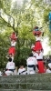 祭りの期間中、今治市内の神社では、日替わりで異なる継ぎ獅子の演技を観ることができます。
